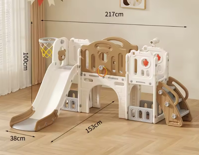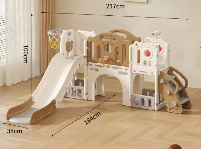 هاي الزحليقة مع المرجيحة راح تخلي عيالكم ينبسطون ويستمتعون بوقت لعبهم. تصميمه ناعم وآمن يناسب البيوت الصغيرة والكبيرة. سهل التركيب ومتين، وفيه سلة كرة بعد للعب الجماعي.