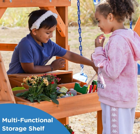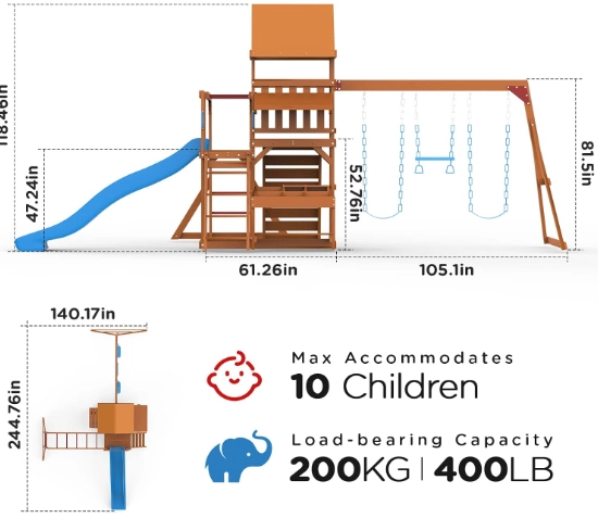 خلّي العيال يلعبون بحماس وحركة مع طقم Gorilla Playground المصنوع من الخشب، يشمل مرجيحة وجدار تسلق متين وآمن.مثالي للحوش، يحفز النشاط والمرح بأمان.