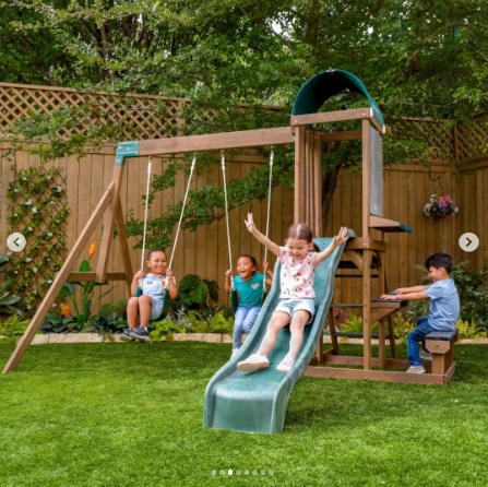 Turn your backyard into a fun and adventurous play zone with the KidKraft Wilderness Point Swing Set!